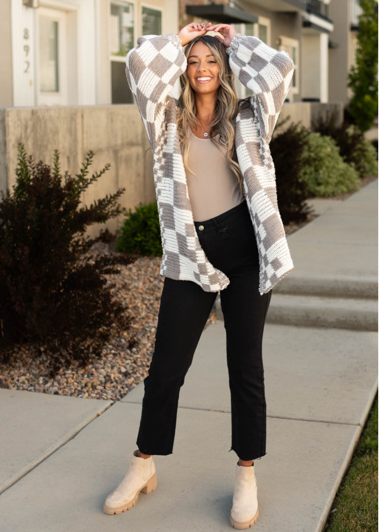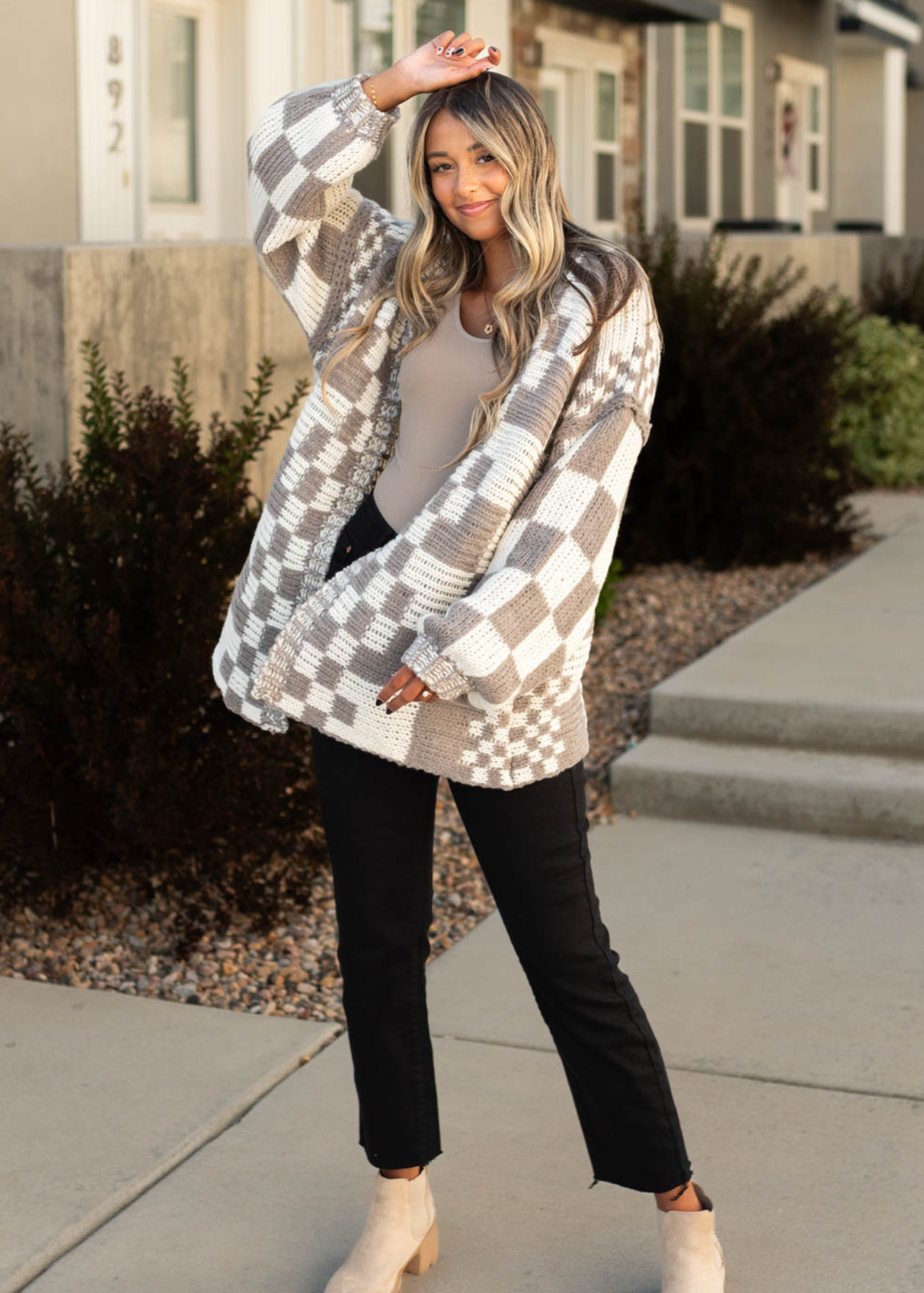 Maddie?is 5'7.5" and wearing a size 3