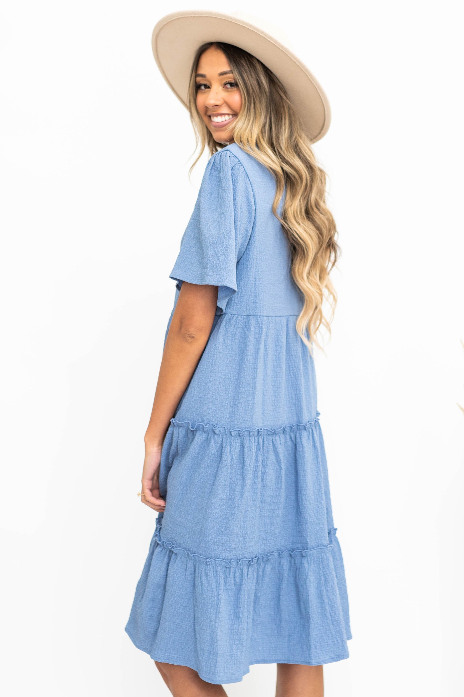 -?Ruffled tiers on skirt + soft flutter sleeves