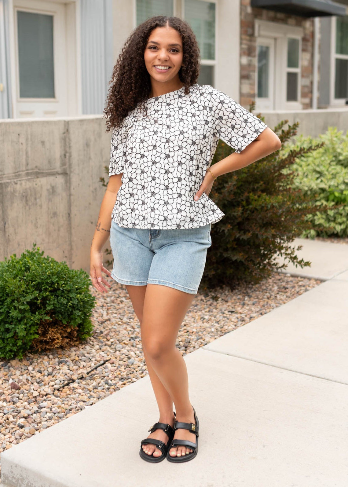 - Scoop neckline with a button keyhole on the back