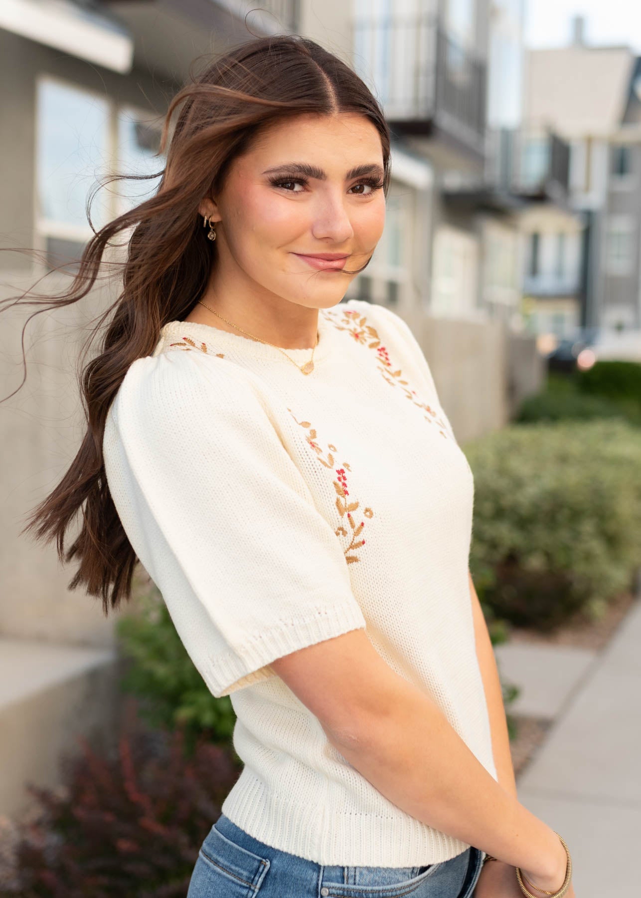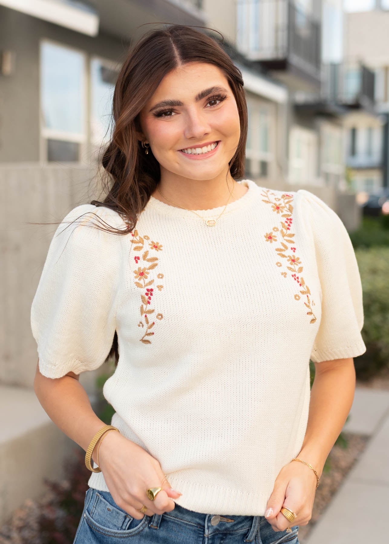 The Nora Top is all about easy elegance with a playful twist. Soft ribbed knit keeps things comfy, while the puff sleeves bring just the right amount of volume. Finished with delicate floral embroidery on the sleeves, she¡¯s the perfect blend of everyday wear and pretty little details.