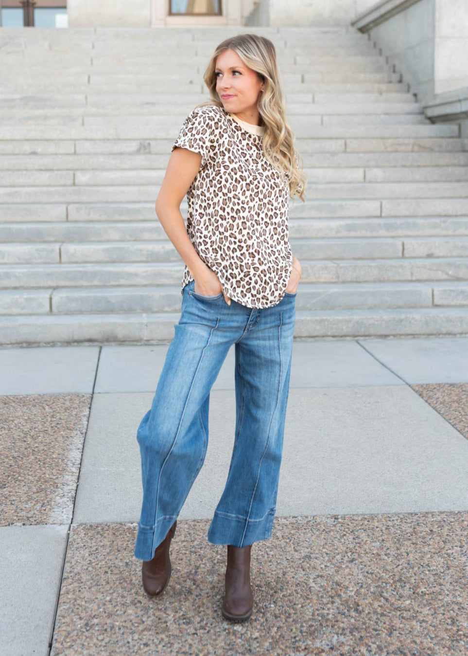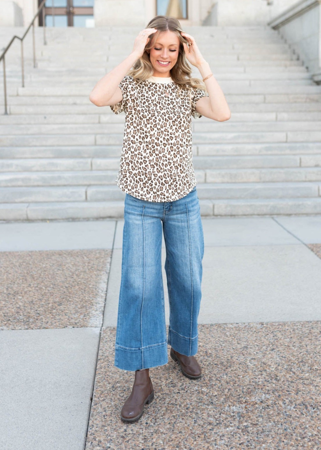 A little wild, a lot comfy¡ªthe Selena Leopard Print Top is your go-to for easy everyday style. Made with a soft, stretchy blend and a thick ribbed collar for that extra pop of texture.