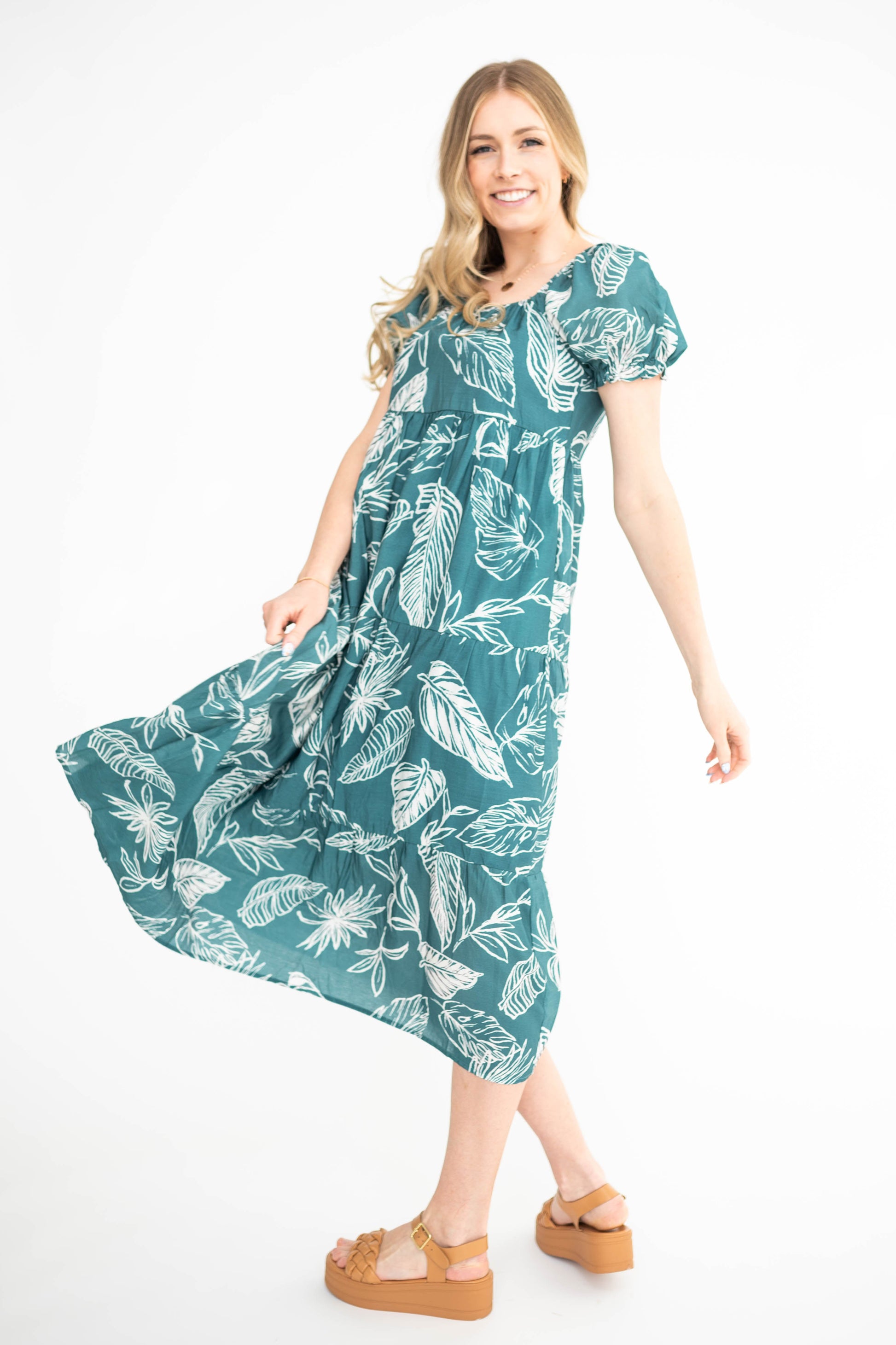 Zandra Teal Floral Dress