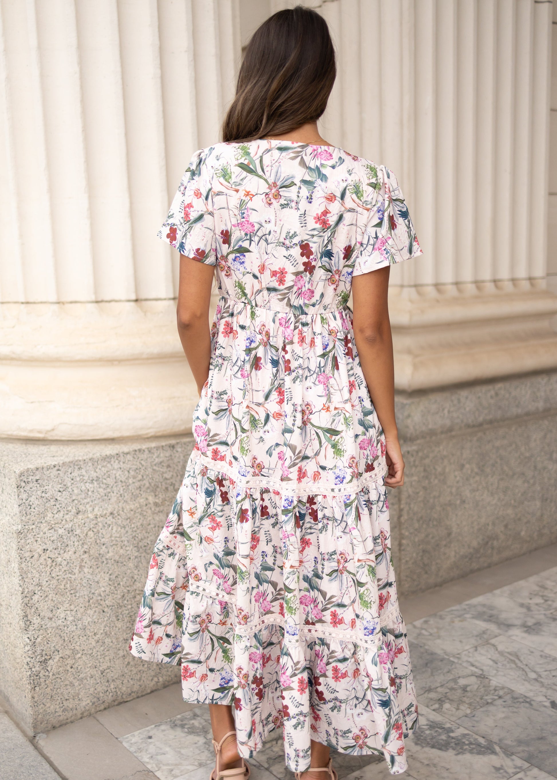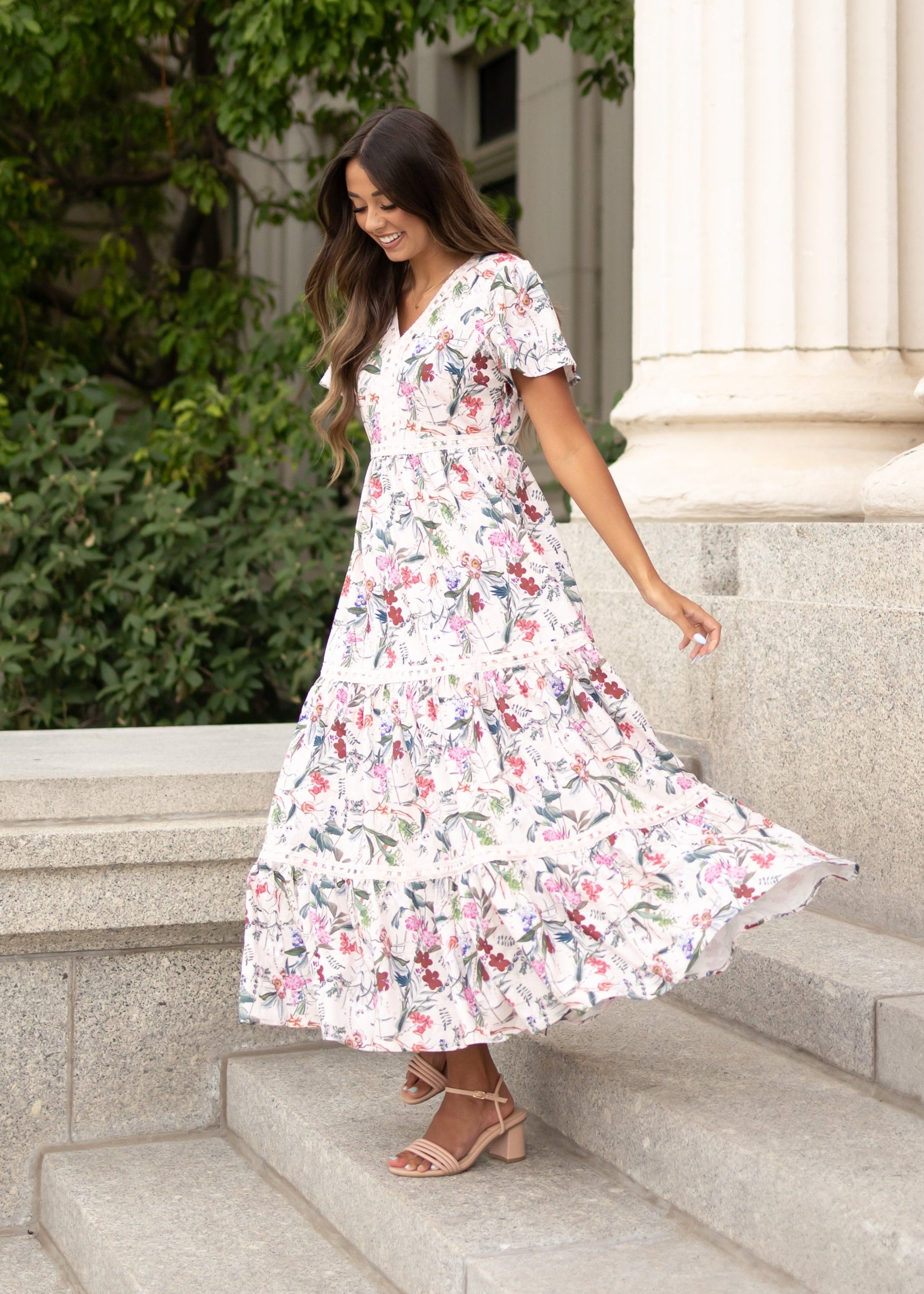 If twirling was a dress, Zoie would be it. With a swirly tiered skirt, dainty lace trim, and a show-stopping floral print, this dress brings all the whimsy. The stretchy fit and side zipper make it easy to wear, while our signature higher neckline offers a bit more coverage without losing that playful charm. Exclusive to Lena Layne and made to turn heads¡ªZoie is a moment.